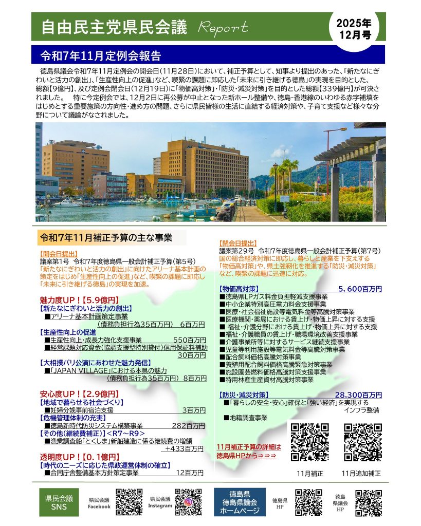 県議会11月定例会について「自由民主党県民会議」レポート